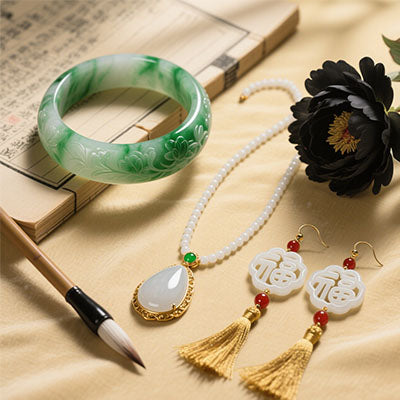 Our Chinese Jewelry: delicate jade pendants & lucky Red string bracelets. Perfect for daily wear—timeless Eastern charm.