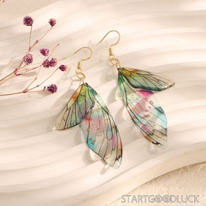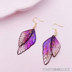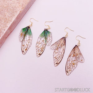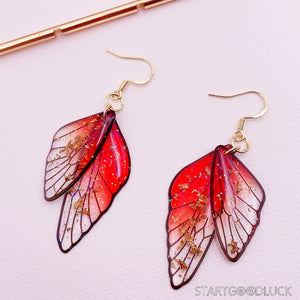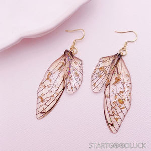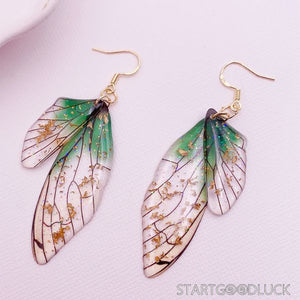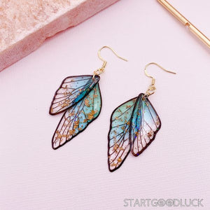 Butterfly Wing Earrings - Resin with Gold Flake Accents Aesthetic Handmade Jewelry