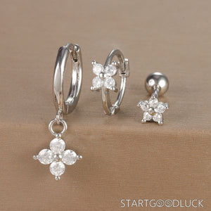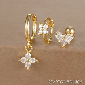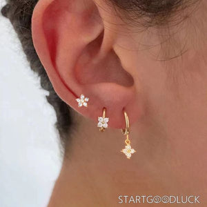 Flower Earrings Set - Gold/Silver Dainty Crystal Stud Earrings Set