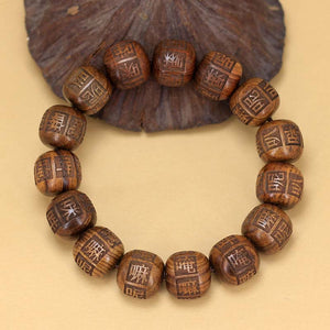 Tibetan Black Pear Wood Bracelet Engraved with Om Mani Padme Hum: Spiritual Grace in Every Bead