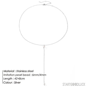 Y - shaped pearl necklace | Stainless Steel 14K Gold/Silver Jewelry