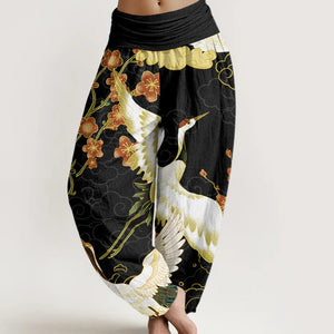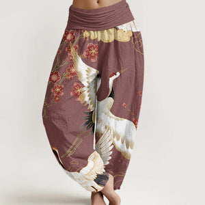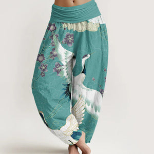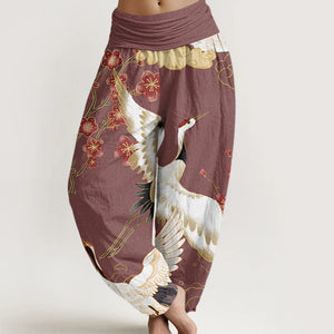 Wide-Leg Women's Long Pants Crane Print Loose Casual style
