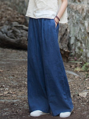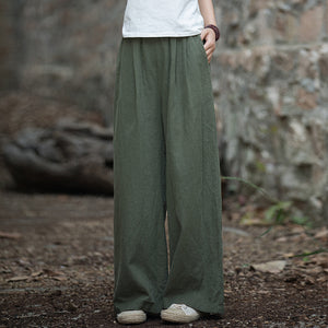 Women's Linen Wide-Leg Pants Versatile Retro Casual Pant