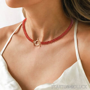 Carnelian Beaded Necklace - Western Fashion Statement Choker with Gold Toggle Clasp