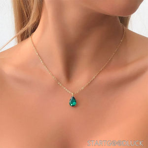 Crafted with a delicate silver chain that has a gold - plated coating for a warm, luminous look, the necklace showcases a teardrop gem in a vivid green hue. The gem’s shape and color create a striking visual appeal, while the overall design strikes a balance between simplicity and sophistication. This versatile piece can be paired with a flowing maxi dress for a boho - chic vibe, a crisp blouse and jeans for casual elegance, or a little black dress for added glamour.