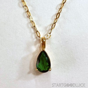 Emerald Diamond Necklace - Elegant Teardrop Emerald Pendant with Silver Gold Plated Chain