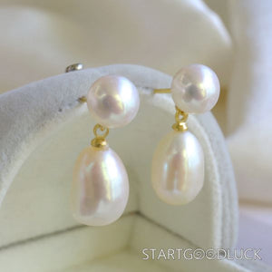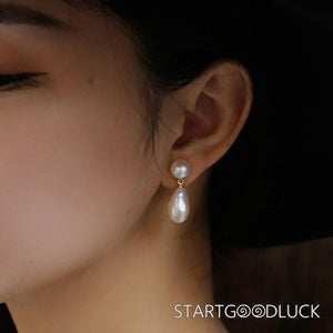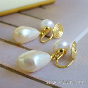 Natural Fresh Water Pearl Earrings | Double Pearl Ear Clip & Earrings | Minimalist Outfits