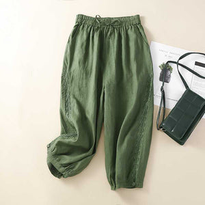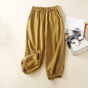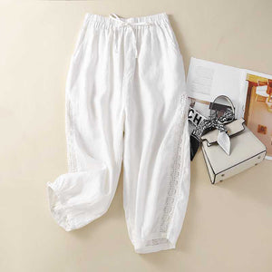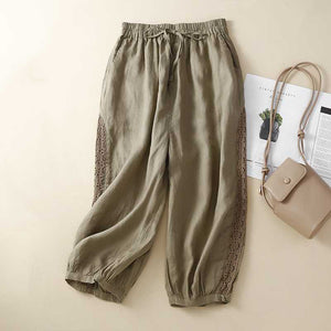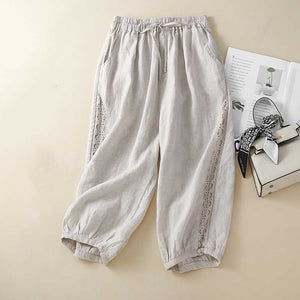 Woman cropped pants cotton and linen loose wide leg pants