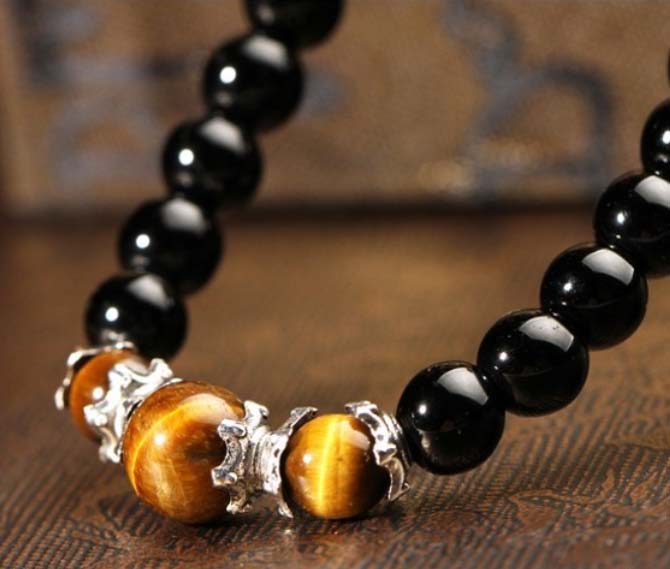 Tibetan Buddhist Mala Beads: 108 Obsidian & Tiger’s Eye Necklace
