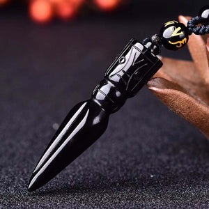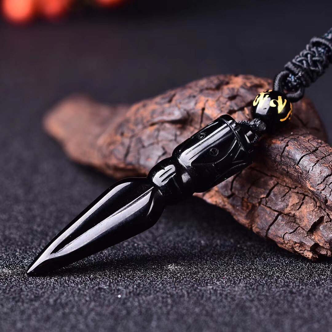Tibetan Buddhist Necklace: Obsidian Vajra Pendant – Protective Gift for Man