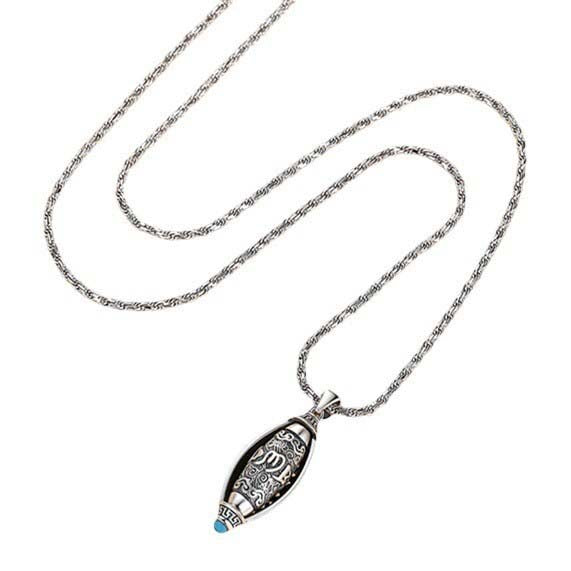 Tibetan Buddhist Necklace: Om Mani Padme Hum Prayer Wheel Pendant (Protect & Awaken)