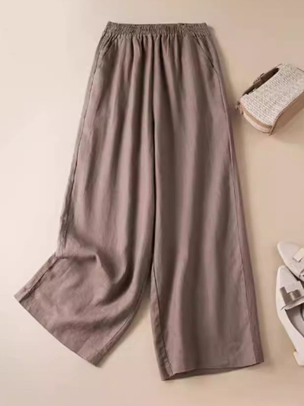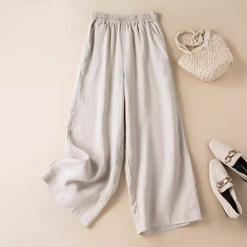 Women Casual Draping Cotton And Linen Wide-leg All-match Cropped Pants