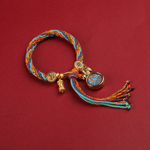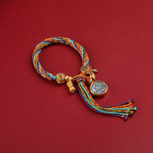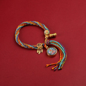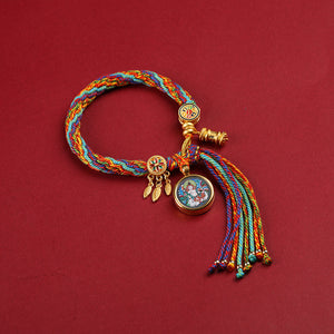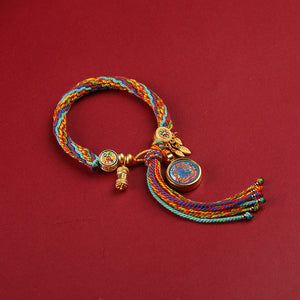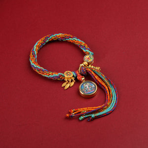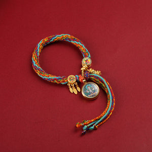 Tibetan Prayer Bracelet Hand-Woven string with Patron Saint Thangka charm