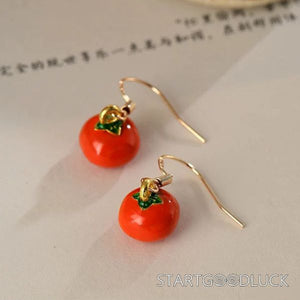 For daily wear, these beautiful persimmon earrings can add a lively and charming touch to various outfits, whether it's a casual look or a slightly dressy one. As a gift, they are perfect because they not only look lovely but also carry the good wishes of bringing good luck, attracting wealth, and being blessed, making the recipient feel cherished.