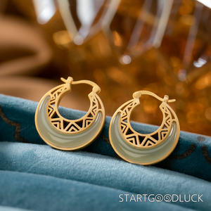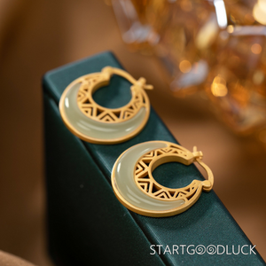 In Buddhist culture, the crescent moon stands for purity and spiritual awakening, acting as a link between the soul and faith. Natural Hetian jade is revered for its ability to draw wealth and blessings, mend spiritual hurts, and clear distracting thoughts. Together, these elements elevate the earring beyond a mere accessory, infusing it with Buddhist spiritual blessings.