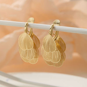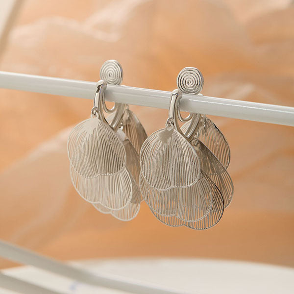 These are Ginkgo Leaf Dangle Earrings, a new - Chinese style daily jewelry piece available in gold and silver with hook or ear clip options. Made of alloy with a polished finish, they feature ginkgo leaf shapes with fine, radial engravings on each leaf. The ginkgo leaf, a symbol of longevity and resilience in Chinese culture, brings cultural charm while the lightweight alloy ensures comfortable wear. The meticulous crafting of each leaf, with precise line details, inherits the elegance of traditional Chinese decorative art, adding a touch of sophistication. Perfect for gifting, they convey wishes of a long and beautiful life.
