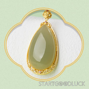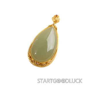 This is a Jade Drop Pendant made of Hetian Jade with a gold border, which is the best necklace for women. It combines elegance with spiritual significance.