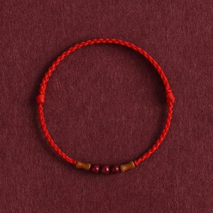 Adjustable Red String Bracelet with Wooden & Red Beads