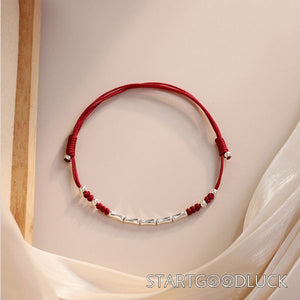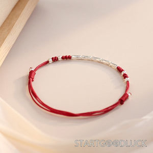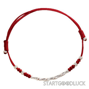 Bamboo Joint Red Srting Bracelet | S925 Sterling Silver Beads | Adjustable String Bracelet