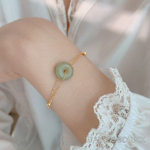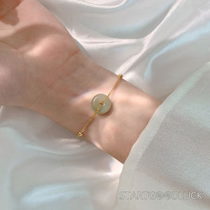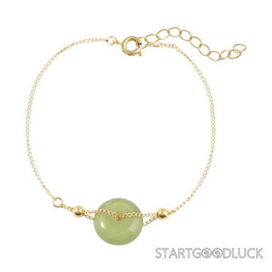 Jade Donut Bracelet - Gold Chain Minimalist Chinese Style Gemstone Jewelry