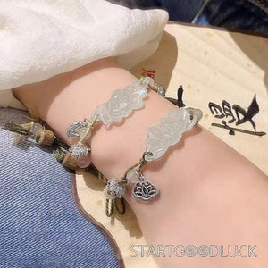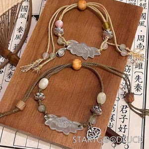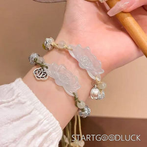 Jade Loutus Pull-string Bracelet | Jade Bead-sanders bead-Adujstable String | Purify Your Mind