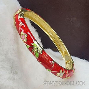Peony Spring Bangle Bracelet | Retro Chinese style | Best Birthday Gift For Mother