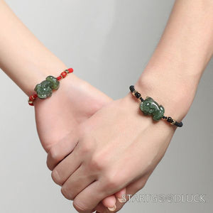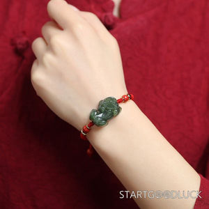 Pixiu Jade Bracelets - Chinese Lucky RedBlack Rope bracelet with Pixiu charm