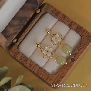 Ideal for daily wear—they add elegance and Buddhist-inspired, uplifting energy to any outfit—these Jade Flower Earrings also make a thoughtful gift. In Buddhist-influenced culture, jade symbolizes luck, protection, and mental clarity, so gifting them shares blessings and the spirit of mindfulness with loved ones.