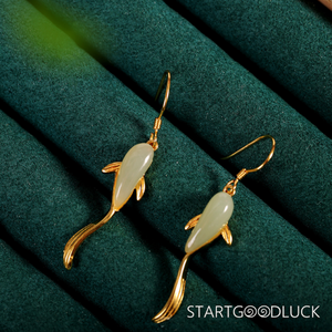 These Koi Fish Earrings feature natural jade and gold, merging exquisite design with rich symbolic significance. At a glance, you can tell they're a unique accessory that carries both aesthetic and spiritual value.