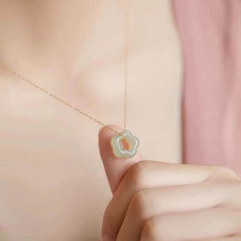 Flower Jade Pendant - Chinese Style Jewelry With Optional Copper Chain