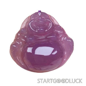 This Purple Jade Buddha Pendant is a stunning jade stone pendant featuring a smiling Buddha sculpture crafted from purple jade, serving as a meaningful jade necklace suitable for anyone, blending spiritual significance with elegant design.