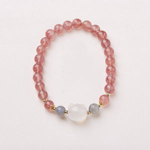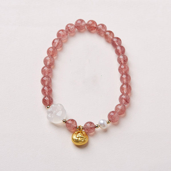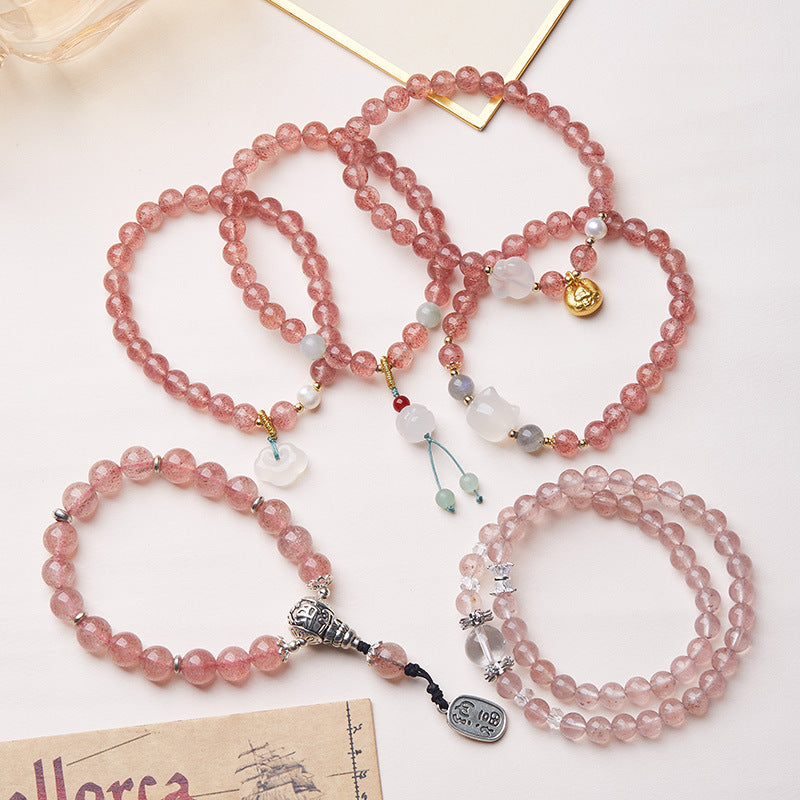 This is a Pink Crystal & Natural Strawberry Crystal Bracelet, a new Chinese-style cultural creative jewelry piece as a daily-wear accessory blending traditional elegance and modern fashion. Made of natural strawberry crystal (symbolizing love and romance in Chinese culture, bringing sweet relationships), pink crystal, and delicately crafted decorative beads, it not only features charming visual layers but also embodies the aesthetic of traditional Chinese jewelry. It’s an ideal gift to convey wishes of love, happiness, and good luck.