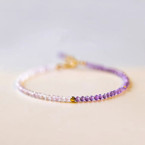 This is an Amethyst Crystal Bracelet with Natural Gemstone Thin 3mm Beads, a new Chinese-style cultural creative jewelry piece as a delicate daily-wear accessory merging traditional elegance and modern minimalism. Composed of natural 3mm amethyst beads(symbolizing wisdom and spiritual peace in Chinese cultural context, bringing clarity and calmness) and exquisite craftsmanship, it features a layered visual appeal and subtle charm. It’s a wonderful gift to convey wishes of wisdom, tranquility, and grace.
