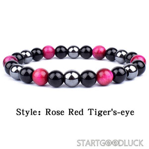 This Triple Protection Bracelet is made with natural tiger eye stones in a range of vivid hues (such as red, blue, green, rose red, and more, just as shown in the images). Each bead is meticulously polished to highlight the stone’s innate luster and distinctive chatoyant glow, ensuring lasting quality and striking visual appeal.
