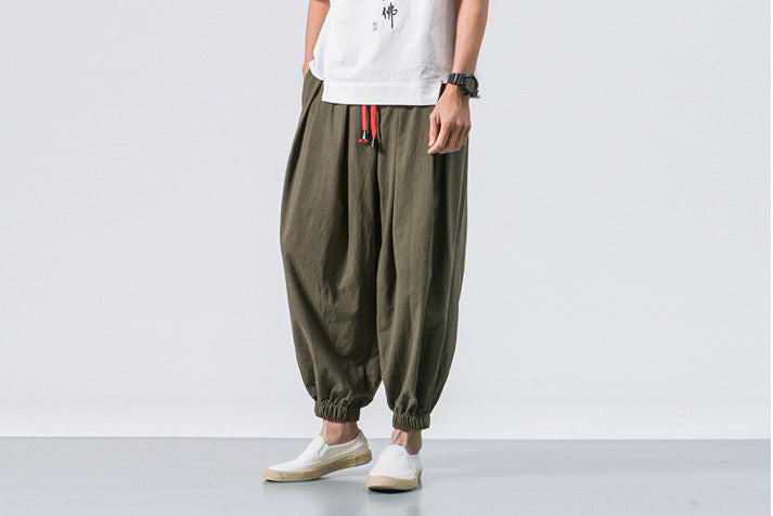 Men's Linen Casual Pants Loose Wide-leg harem Pants
