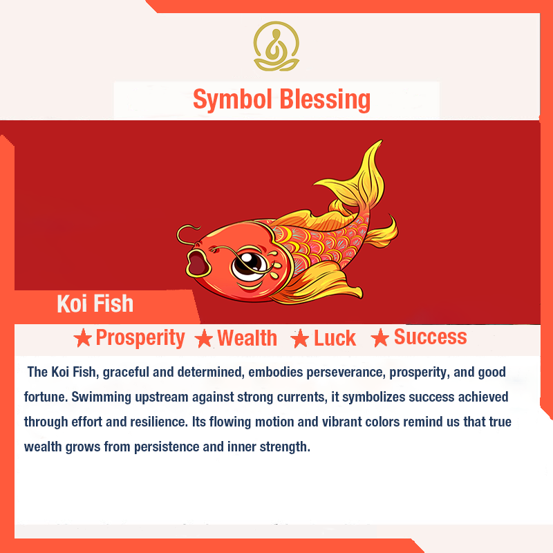 The Koi Fish, graceful and determined, embodies perseverance, prosperity, and good fortune. Swimming upstream against strong currents, it symbolizes success achieved through effort and resilience. Its flowing motion and vibrant colors remind us that true wealth grows from persistence and inner strength.