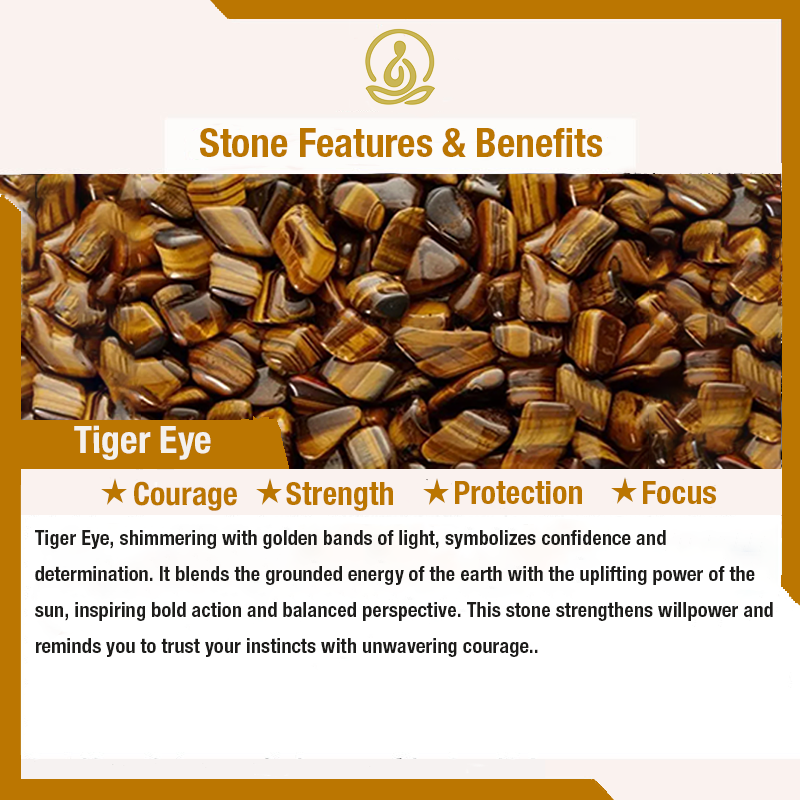 Tiger Eye, shimmering with golden bands of light, symbolizes confidence and determination. It blends the grounded energy of the earth with the uplifting power of the sun, inspiring bold action and balanced perspective. This stone strengthens willpower and reminds you to trust your instincts with unwavering courage.