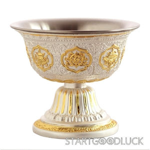 When using this Chinese - style clouds pattern cup for water offering, the water must be pure, which signifies the worshipper's pure heart. It's believed that this purity can help purify thoughts and make the spiritual connection with Buddha more sincere, as if Buddha's blessing is more easily received with a blameless mind. Meanwhile, the platinum two - tone design is so visually appealing that the cup can also serve as a wonderful decorative item, adding an elegant and sacred touch to your space, as if the divine beauty of Buddhism is always by your side.