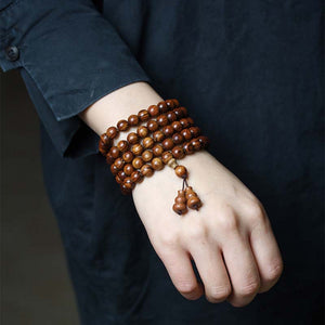 Tibetan Natural Huanghuali 108 - Bead Mala Necklace: Eliminate Troubles, Attract Blessings