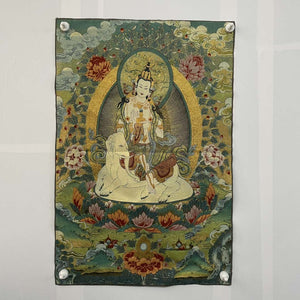 Thangka Painting | Embroidered Guanyin on Elephant Throne: Compassion & Protection