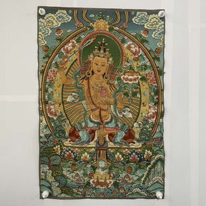 Thangka Painting | Embroidered Manjushri on Lotus Throne: Wisdom & Enlightenment