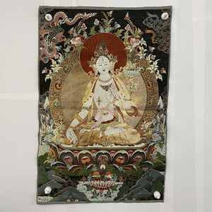 Thangka Painting | Embroidered White Tara on Lotus Throne: Healing & Longevity
