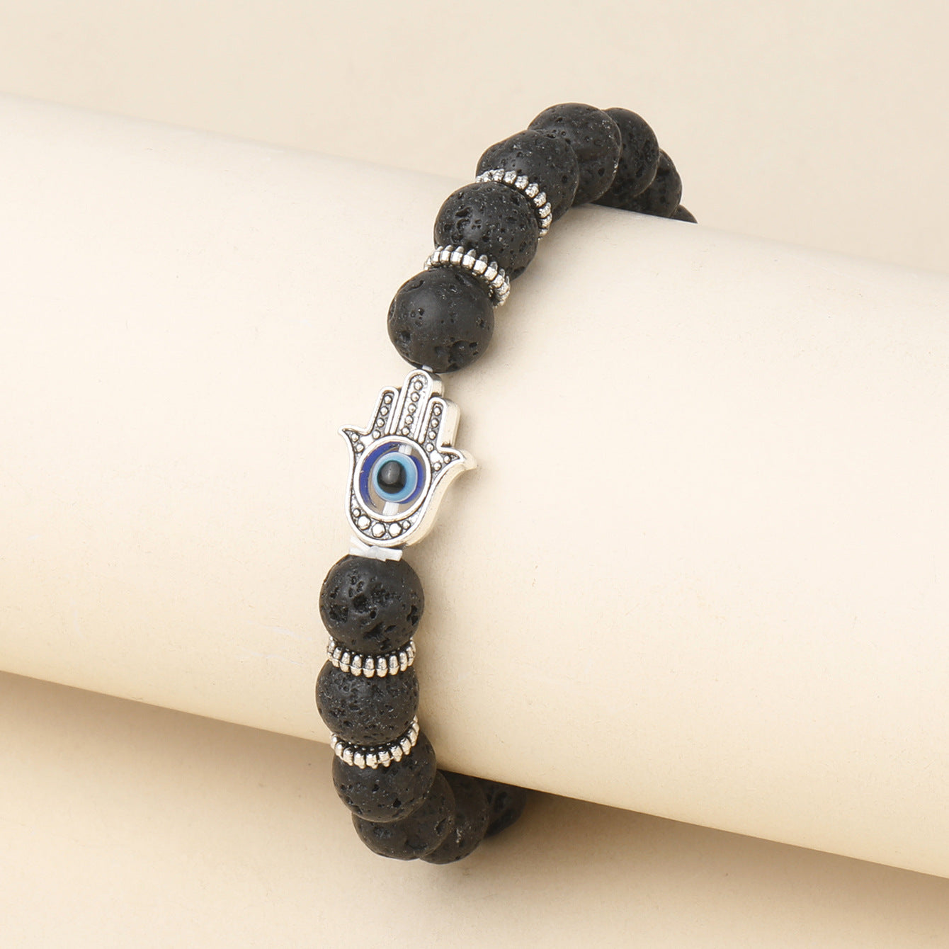 Volcanic Stone Bracelet Evil Eye charm hand-made beads