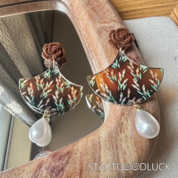 They are crafted with care, offering both Earring and Ear-clip Type options, making them accessible for all, and the acrylic and pearl combination brings a cozy, atmospheric fall feel.