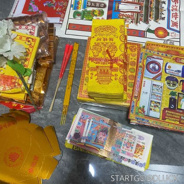 This comprehensive Chinese Spiritual Paper Set is a curated collection of ritual papers, offerings, and symbolic items, designed to support ancestor worship, Feng Shui practices, and spiritual rituals, while attracting wealth and good fortune.