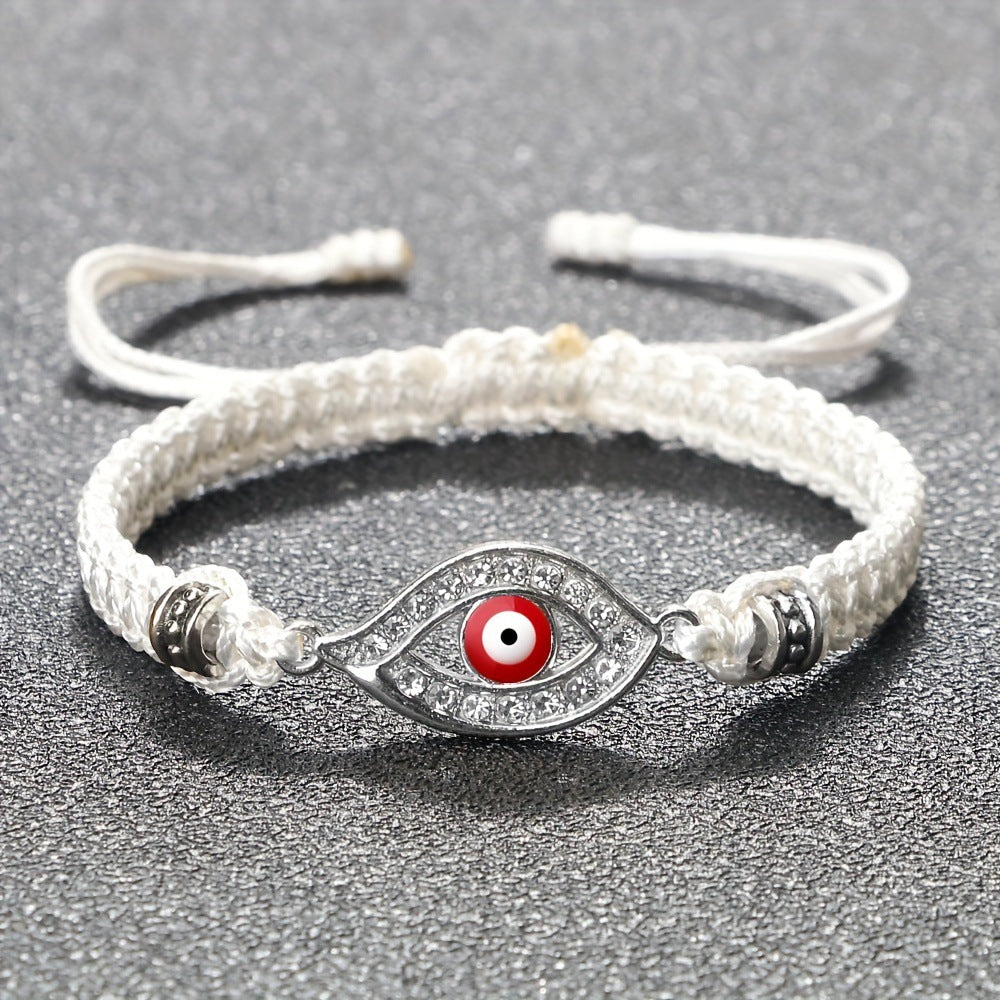 This is a Red Evil Eye Tibet Hand-Woven Adjustable Bracelet, a new Chinese cultural and creative jewelry that blends traditional Tibetan culture with modern fashion. Made of hand-woven cords and inlaid with red evil eye pendants adorned, the hand-woven process, with its intricate multi-strand weaving, embodies the profound craftsmanship of Tibetan heritage, symbolizing protection and good luck, while the red evil eye, a classic cultural symbol, is meticulously crafted to represent warding off negative energies and bringing blessings. It is adjustable to fit different wrist sizes, suitable for daily wear and gifting, carrying the beautiful meaning of safeguarding the wearer with peace, prosperity, and positive vibes.