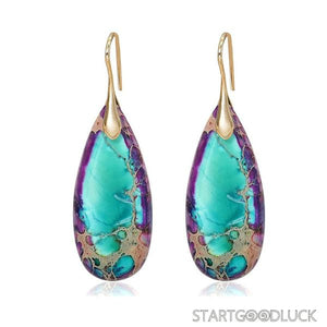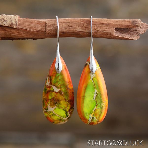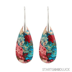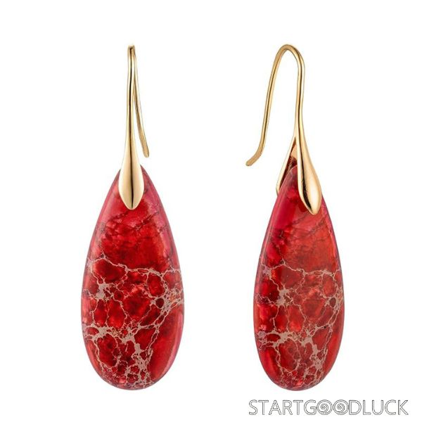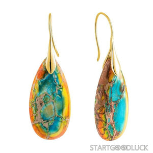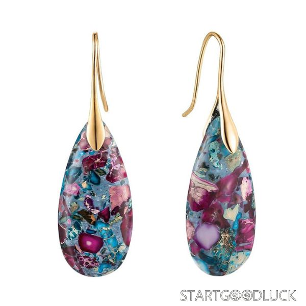 The earrings showcase teardrop - shaped natural stones with rich, multicolor patterns. The gold or silver hooks not only ensure durability but also add a touch of sophistication. The teardrop design is timeless, and the mix of colors makes them easy to match with various styles—from a casual denim jacket to a chic evening dress. You’ll love how they effortlessly elevate your look, whether you’re going for a laid - back or a polished aesthetic.