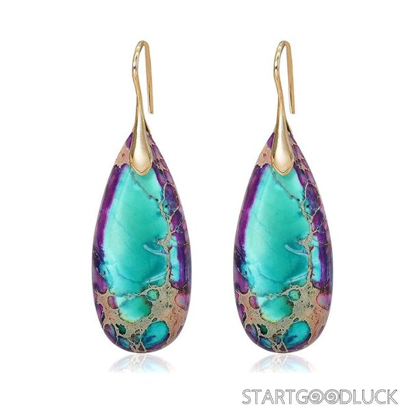 In Western culture, stones are seen as carriers of earthy energy and natural beauty. These teardrop natural stone dangle earrings embody that spirit—each stone’s unique pattern is like a tiny landscape, symbolizing the wonder of nature. Whether you wear them to a lively music festival to show off boho vibes, a wedding to add a touch of understated elegance, or a fancy gala to make a statement, they’re a perfect choice. They also appeal to lovers of niche jewelry, as each pair is distinct, telling its own natural story.